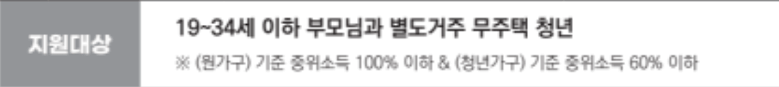 ✔️ 청년 독립가구: 기준 중위소득 60% 이하 (1인 가구 기준 월 1,435,000원 이하)